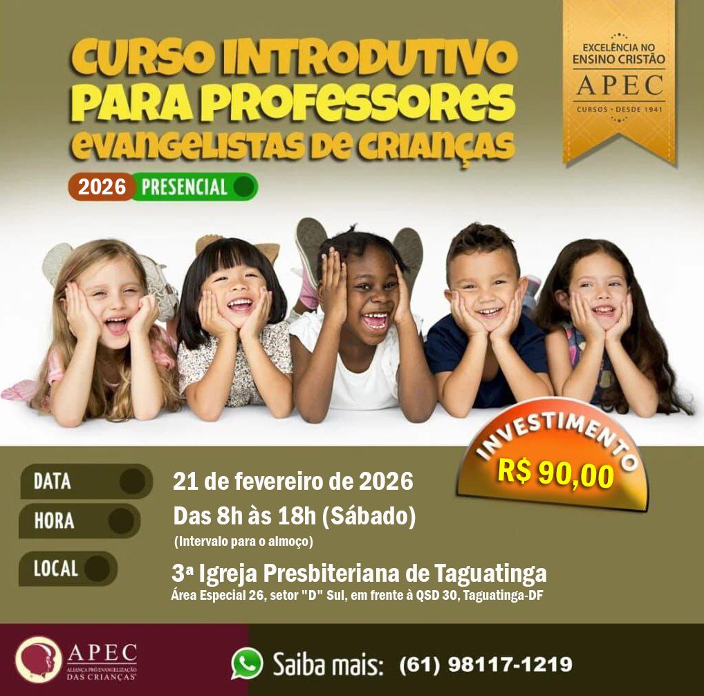 5. A APEC enviará um Cartaz para que sejam feitas cópias e distribuídas entre as igrejas, assim como as fichas de inscrições, que serão feitas pela Igreja ou Entidade que promover o Curso;